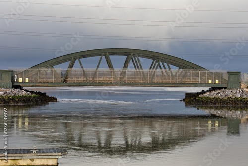 Fototapeta premium railway bridge over the river in Poole - Dorset - Bournemouth -united kingdom