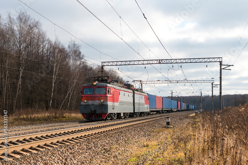 © Ivan, Naklejka premium railway freight train. locomotive close up. Russian Railways