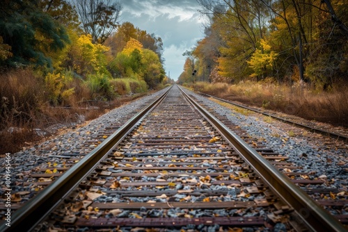 © ArtSpree, Fototapeta premium railway in autumn - Created with Generative AI Technology. Beautiful simple AI generated image in 4K, unique.