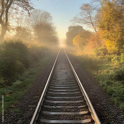 © Fatoniyah, Fototapeta premium railway in the morning fog
