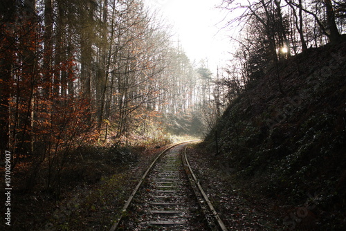 © Thronblüte365, Fototapeta premium railway in the morning fog