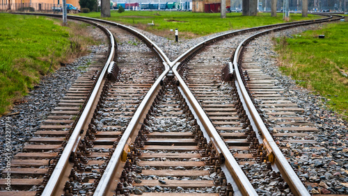 Fototapeta premium railway, in the photo there are railway switches and rails close-up