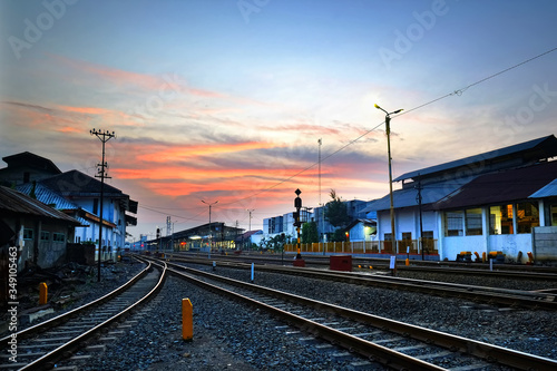 Fototapeta premium railway in the sunset