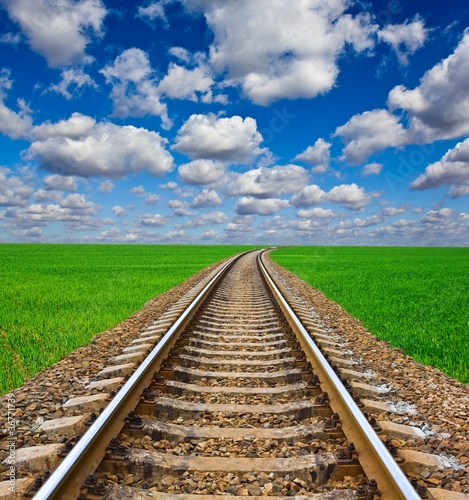 © Yuriy Kulik, Fototapeta premium railway leaving far among a green fields