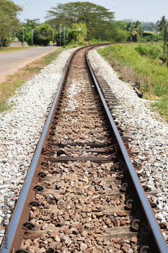 Fototapeta premium Railway or railroad tracks for train transportation.