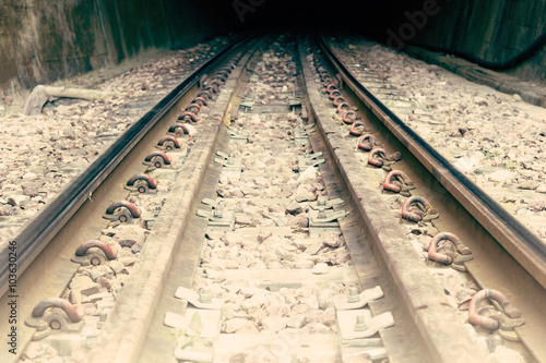 Fototapeta premium Railway or railroad tracks for train transportation (vintage style)