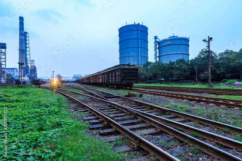 Fototapeta premium Railway passes through the steel plant industrial area.
