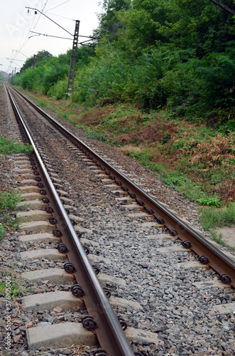 © Елена Бабушкина, Fototapeta premium Railway. Paths. Rails and sleepers. Station in the village. Journey.