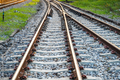 Fototapeta premium Railway railroad tracks for train public transport