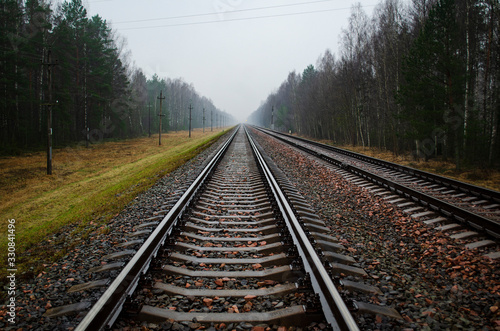 © Сергей Семенов, Fototapeta premium railway rails and sleepers along the forest