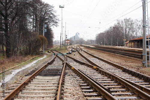 © Artūrs Stiebriņš, Fototapeta premium Railway road intersection.