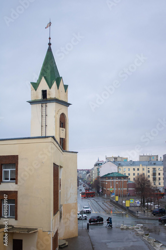 Naklejka premium Railway station in Kazan, April 2022. Железнодорожный вокзал в Казани, апрель...