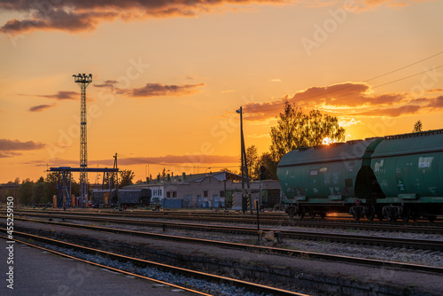 Obraz premium Railway Station In Sunset Lights