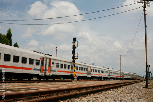 © ozzuboy, Obraz premium Railway station with passanger train in java Indonesia