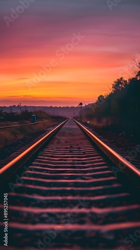 © SkoldPanda, Fototapeta premium Railway Track at Sunset Showing a Long Journey.