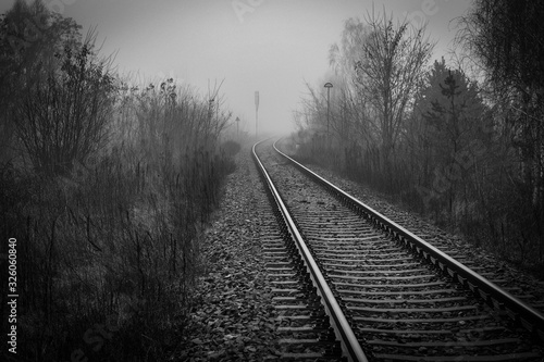 Fototapeta premium Railway track disappear in fog