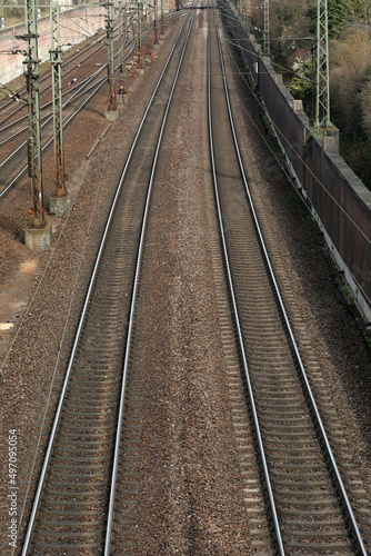 © Andrea Geiss, Fototapeta premium Railway track in a stone bed