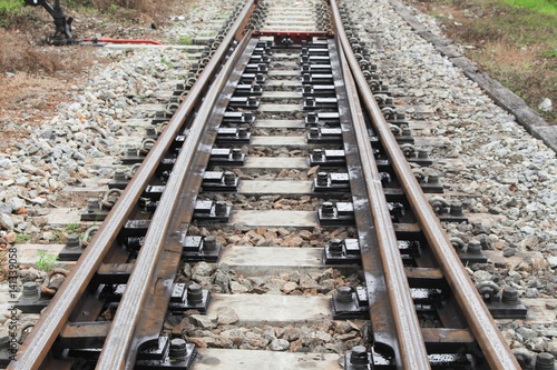 © pramot48, Fototapeta premium railway track on gravel for train transportation: Select focus with shallow depth of field :