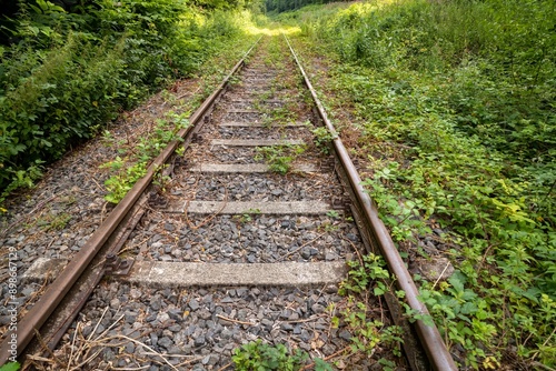 © Ulrich, Fototapeta premium railway tracks close up in the green
