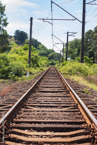 Fototapeta premium Railway tracks in the countryside, Georgia