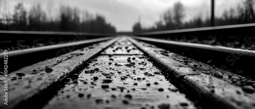 Obraz premium Railway tracks leading into the distance, black and white scenery.