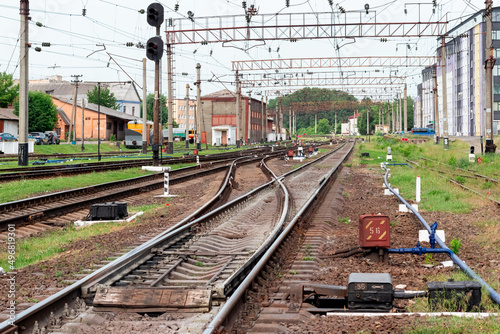 © Volodymyr, Naklejka premium Railway tracks near high-rise buildings of the railway station