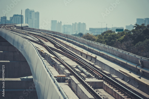 Naklejka premium Railway tracks of the electric train, the transportation of the future. Solving traffic problems in the capital.