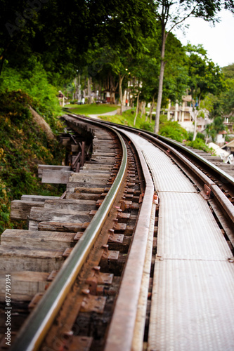 © Chonlapoom Banharn, Fototapeta premium Railway tracks through forest