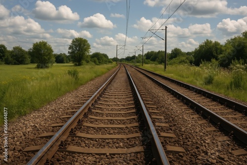 Fototapeta premium Railway tracks through lush countryside.
