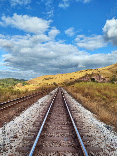 © Marlon, Fototapeta premium Railway train track , blue sky, clouds and mountains at Itabira Minas Gerais, Brazil