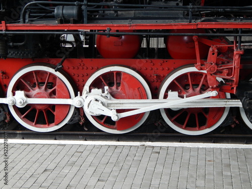 © Олег Прокопенко, Naklejka premium Railway transport details of locomotive, wagon