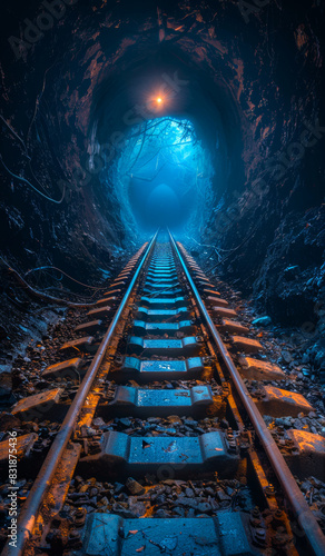 Naklejka premium Railway tunnel. A railway tracks in the dark tunnel