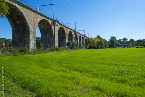 © Naj, Fototapeta premium Railway viaduct along a meadow in summer