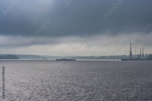 © Тищенко Дмитрий, Naklejka premium Rain and clouds over the river and the city