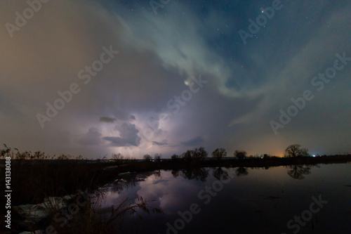 Fototapeta premium Rain and lightning above the river