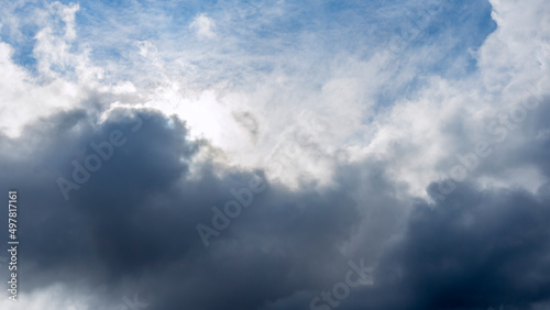 Obraz premium Rain cloud and sun beam. Panorama of cloudy gray sky. Abstract textured. Rain...