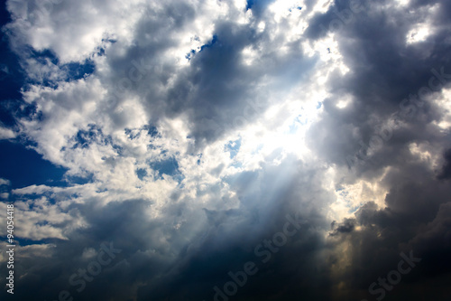 © Kittiphan, Obraz premium rain cloud and sun beam with dark sky