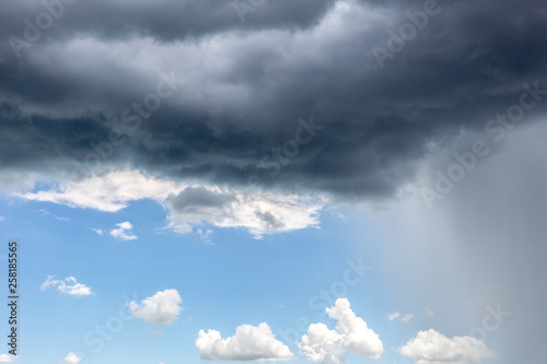 Fototapeta premium Rain cloud. Weather change. Different climatic situations in a single image.