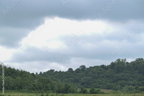 Obraz premium rain clouds over forest hills