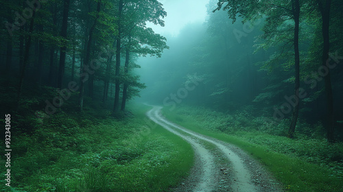 Fototapeta premium Rain-drenched dirt road in the forest