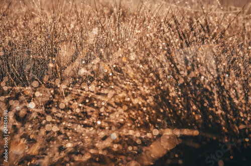 © kovop58, Obraz premium Rain drops in Grass. Spring or summer season abstract nature