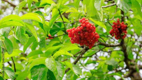 © asa, Obraz premium rain drops on red tropical berries
