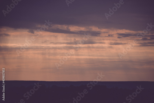 Fototapeta premium rain seen from afar at sunset. colored clouds on the horizon