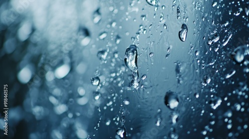 © Nihad, Fototapeta premium Rain transparent drops flow down the glass.Realistic wet condensation texture.Fresh water splash effect on the surface.Liquid spreading