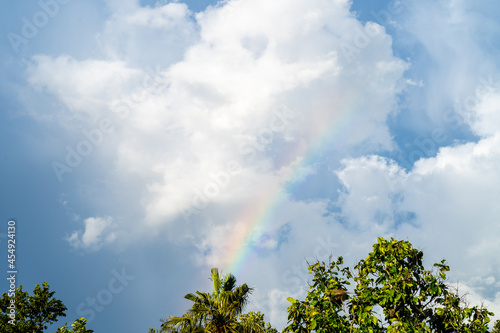 © tienuskin, Obraz premium Rainbow against cloudy sky background.