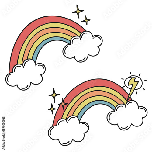 Fototapeta premium Rainbow and clouds vector illustrations