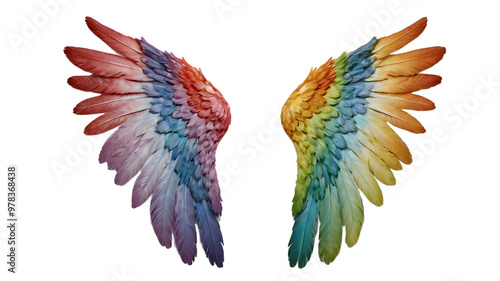 Obraz premium Rainbow angel wings isolated on white, transparent background