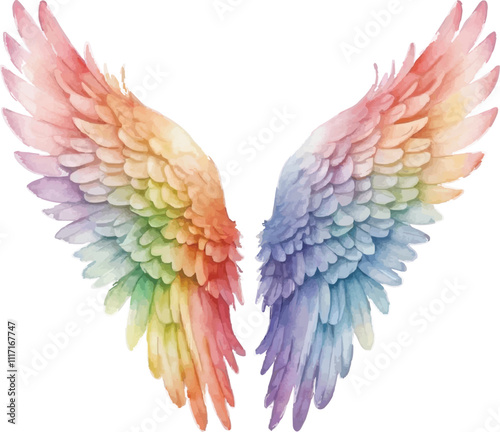 Fototapeta premium Rainbow angel wings watercolor illustration isolated
