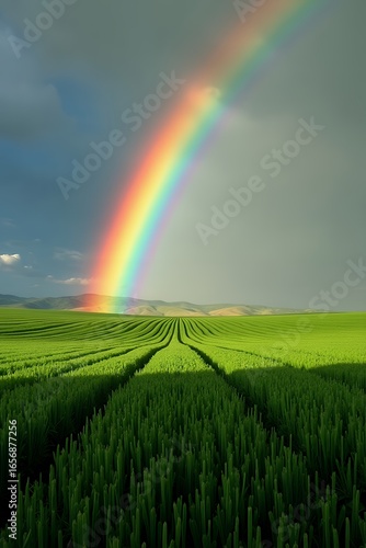 © Ainur, Obraz premium Rainbow arches over a vibrant green field.