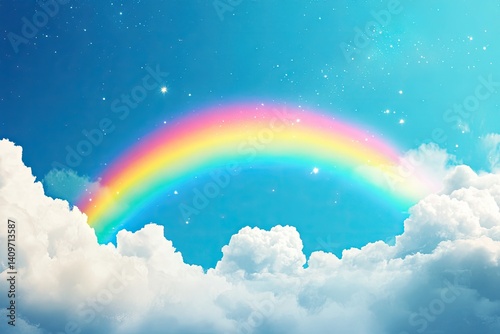 Naklejka premium Rainbow arching over fluffy clouds in a vibrant sky
